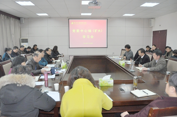 1月16日上午,学校在行政办公楼第四会议室召开党委理论学习中心组(扩大)学习会。与会人员集体学习了《中纪委十九届三次全会精神(全会公报)》、教育部评估中心2019年参评学校培训会、全省教育大会等会议和文件精神。校党委书记付建成主持学习会。