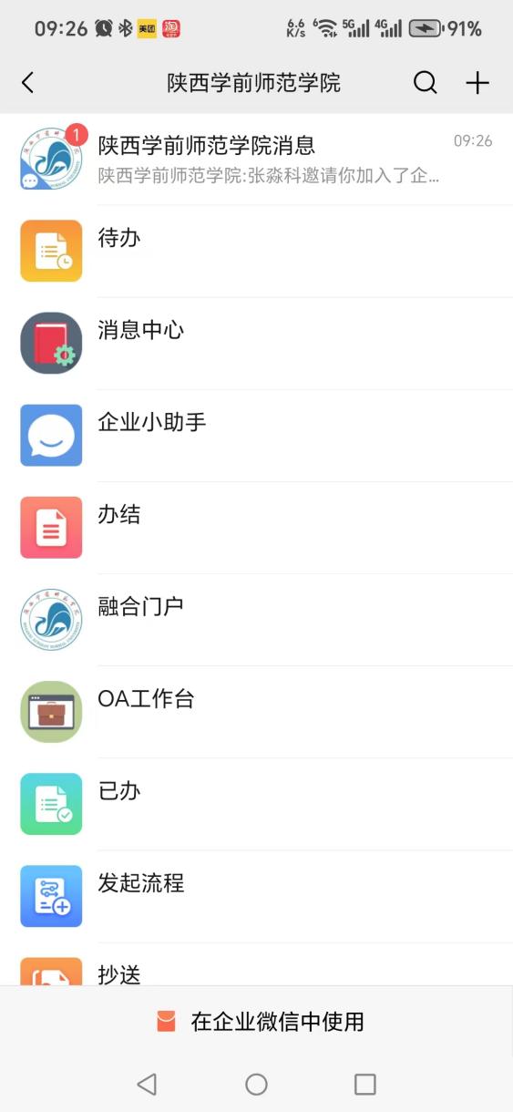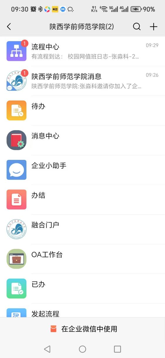 微信处理学校OA系统业务操作指南 一、企业微信账号激活 1.在手机上下载企业微信; 2.使用在人事处登记的本人手机号码登录企业微信,会提示您加入“bat365中文官方网站”,点“同意”加入。 如果已经加入学校企业微信,可跳过此步。 二、微信关注学校企业微信 1.使用微信扫描学校企业微信号二维码(图1)。 图1学校企业微信号二维码 2.点绿色的“关注”按钮关注学校企业微信号。(图2) 图2学校企业微信号关注界面 三、微信处理学校OA系统业务操作 1.微信关注成功后界面见图3。 2.当OA系统有新的业务需要处理时“流程中心”会有新消息提示(图4)。 3.点开“流程中心”的新消息即可使用微信处理简单的OA系统业务(图5、图6),部分复杂的OA系统业务仍需使用计算机端进行处理。 图3企业微信号界面 图4企业微信号新消息提醒 图5企业微信号流程中心 图6企业微信号OA业务办理 若您在使用过程中遇到问题,请拨打029-81530133咨询。 网络与信息化管理处 2025年3月12日