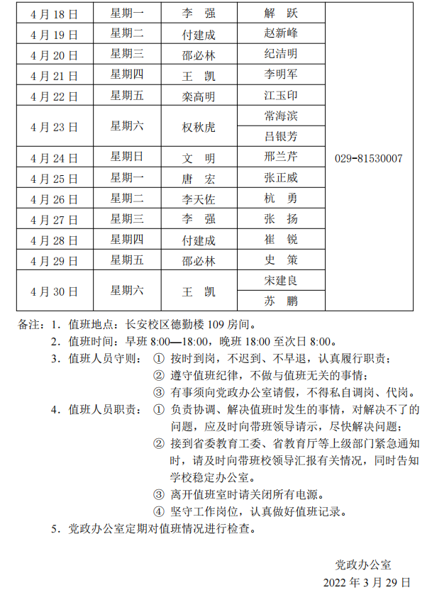 上一条:bat365中文官方网站长安校区值班表(2022年4月1日—4月30日)