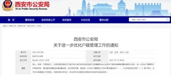 为贯彻落实国家关于超大特大城市加快转变发展方式部署要求和公安部关于服务保障高质量发展有关安排,进一步优化户籍管理工作制度供给,更好服务保障西安高质量发展,经市政府同意,现就进一步优化户籍管理工作有关事项通知如下: