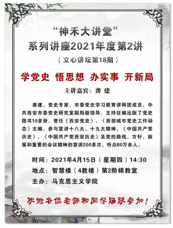 为进一步推动党史学习教育深入开展,bat365“神禾大讲堂”系列讲座2021年度第2讲即将举行,现将具体情况通知如下: