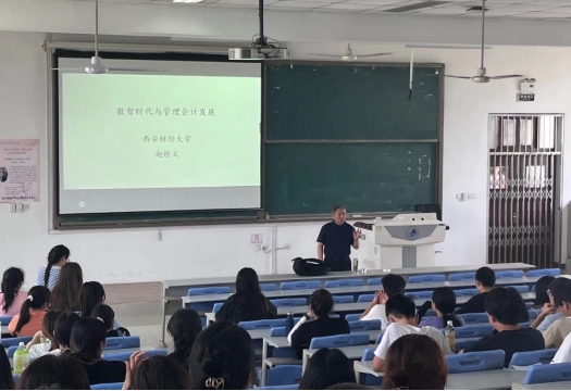 6月1日下午,bat365诚邀西安财经大学商学院赵栓文教授做客“神禾大讲堂”,于博文楼B3多媒体教室开展“数智时代与管理会计发展”专题讲座。经济与管理学院财务管理专业教师及学生参会。