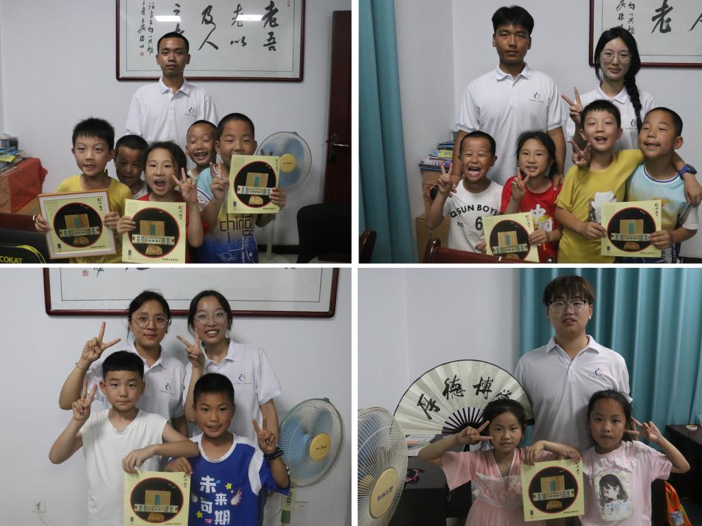 实践队特别设置了麦杆画制作体验课,安排专人负责和孩子们分享了麦杆画文化传统、历史渊源、制作工艺和现实价值等,有意为乡村儿童打开不一样的视野,带他们了解非遗艺术,了解大雁塔、丹凤门、钟楼、鼓楼、永宁门等西安地标建筑物特有的文化底蕴。此外,实践队专门设计了bat365中文官方网站图书馆、体育馆、校训石等师院特色建筑物的麦杆画,也通过它们为孩子们详细介绍了bat365中文官方网站的办学特色、优势专业及实践队员们所属专业、特色校园文化活动等。