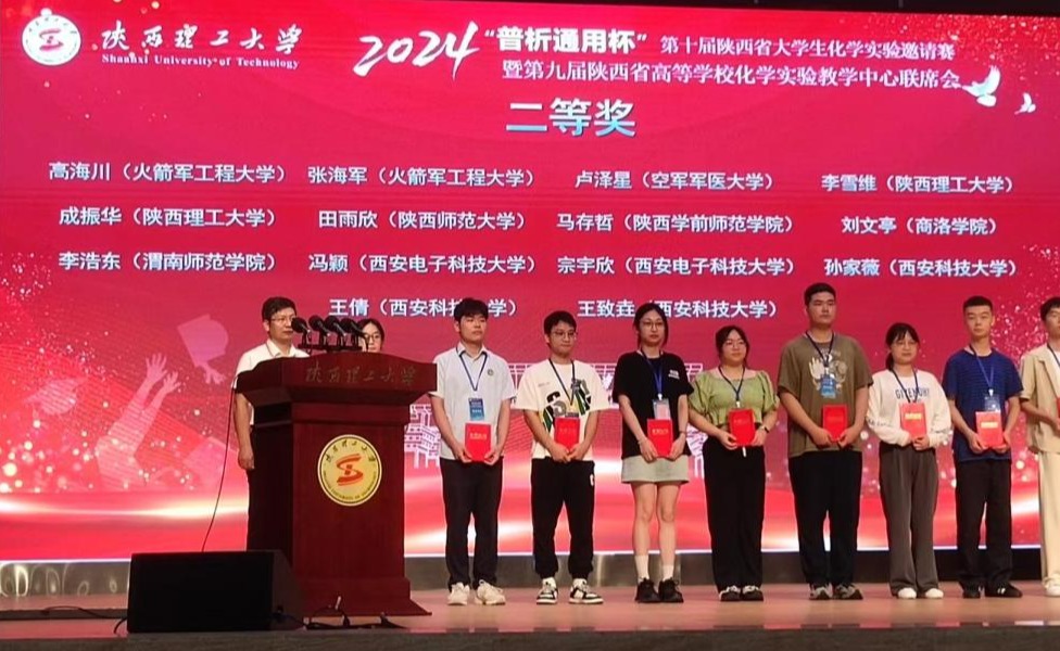7月12至14日,由陕西省化学会和陕西省高等学校化学实验教学中心联席会主办、陕西理工大学承办,西安医学院药学院协办的“普析通用杯”第十届陕西省大学生化学实验邀请赛暨第九届陕西省高等学校化学实验教学中心联席会在陕西理工大学举行。来自省内26所高校的108名学生代表参加了比赛。由李连庆教授带队,赵大洲、赵咪娜、肖正凤、王超等老师担任指导教师的bat365代表队获优秀团队奖,马存哲获得二等奖,刘嘉新、朱星宇、武宇杰获得三等奖。