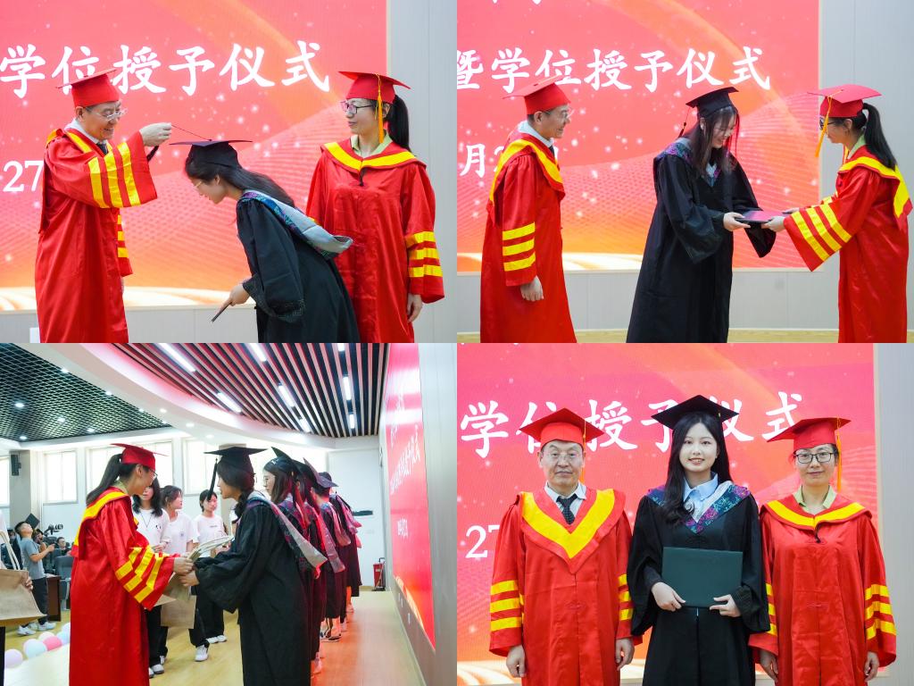 典礼在庄严的国歌中拉开帷幕。学院党委副书记张晔宣读了准予2024届学生毕业的相关决定以及授予2024届本科毕业生学士学位的相关决议。副院长丁剑洁为所有毕业生颁发学士学位证书,院长李宏飞为毕业生逐一拨穗正冠,并合影留念。