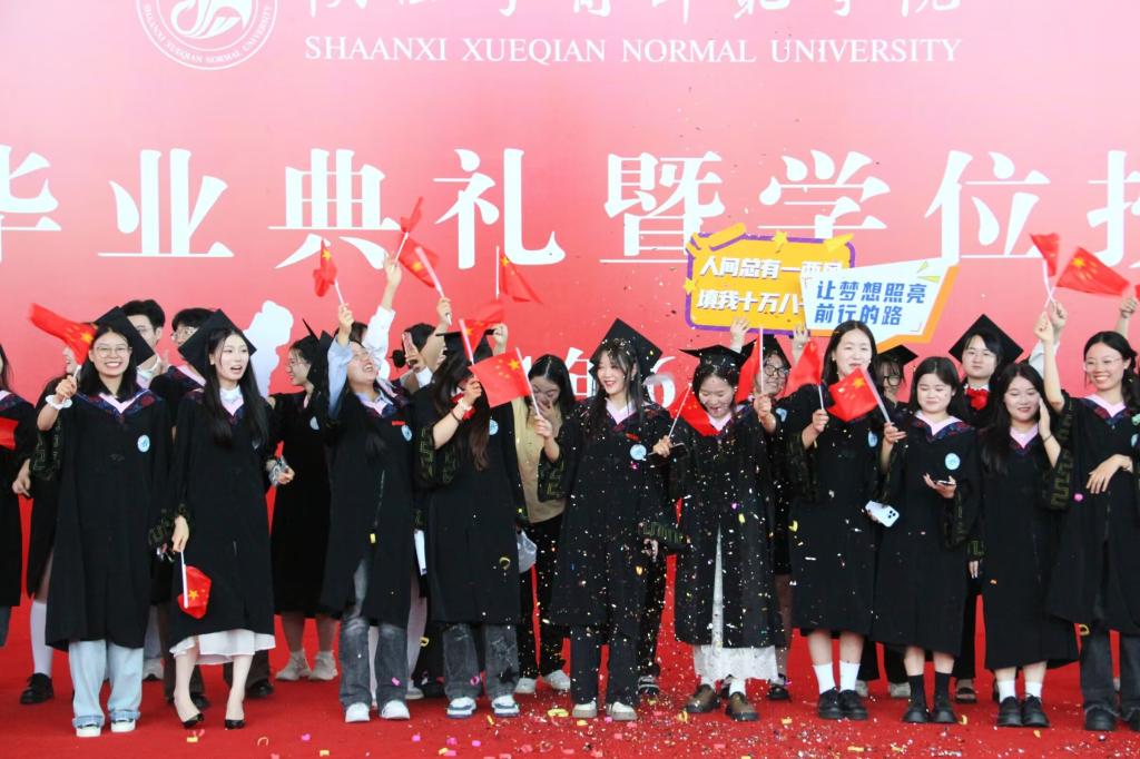 毕业短视频回顾了2024届毕业生大学的点点滴滴——难忘的师恩、珍贵的友情、成长路上的坎坷、收获成功的喜悦。一帧帧美好的画面令在场师生感动不已。毕业生代表赵思婕深情回忆了大学四年难忘的瞬间,和同学一起走过校园的每一个角落,相遇皆是缘分。她真诚感谢老师的谆谆教诲,感谢学校搭建各类活动、比赛的平台,让同学们有机会提升自己。她表示会用一生去诠释“厚德博学”校训、“勤学善思”学风、“知行统一”校风,用行动和奋斗书写属于陕师院,属于新时代的华彩篇章。