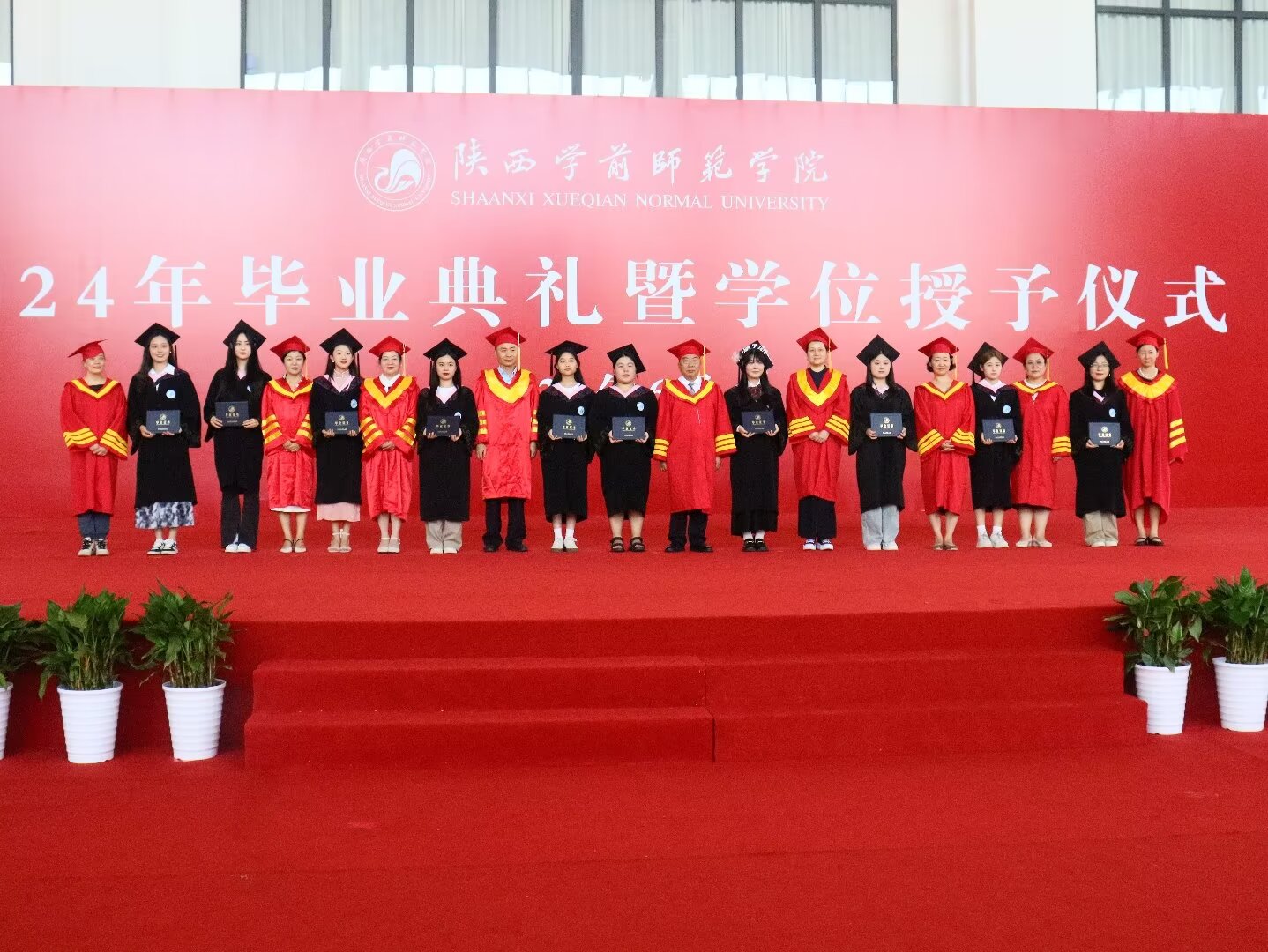 幼儿教育学院副院长范铭、张亚妮分别宣读了《关于准予李若兰等753名学生毕业的决定》、《关于拟授予李若兰等753人教育学学士学位的决定》,与会领导为毕业生代表赠送毕业留念礼物——一枚刻有院徽和院训的姓名印章,同时颁发了毕业证书。2020级优秀毕业生刘德华带领全体毕业生面向院旗庄严宣誓:用智慧和才华肩负起民族复兴的使命;用青春和热血承担起国家富强的责任。今天我以陕师院为骄傲,明天陕师院以我为自豪。