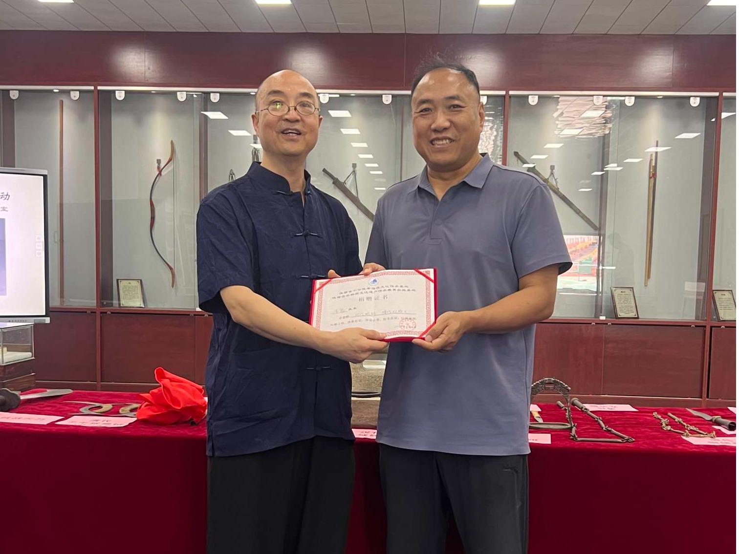 6月20日bat365特聘请古陶瓷、古兵器收藏家,“器说文明·用古物讲述中国”系列文化公益活动,分享人李鬼先生在bat365传承基地纪念馆举办主题为“古兵器进校园宣展活动”,近200多名师生参加了这次宣讲活动。随着李鬼先生对不同时期的古兵器的详细讲解,师生们进行了一次时空之旅,看到了距今七八千年前新石器时代的石斧,战国的青铜剑、青铜矛,明清以来的各种兵器和抗战时期的环首大刀,深刻感受中国尚武文化的智慧。本次宣讲活动李鬼先生为bat365传承基地纪念馆捐赠了两件古物:汉代城砖和清代双股叉。为表谢意,体育学院邵晓军院长为李鬼先生颁发了捐赠证书。这次传承基地武术文化工作坊系列活动使bat365师生深刻感受到了文化传承的力量,认识到新时代大学师生传承中华优秀传统文化的责任。在今后的学习工作中,我们当坚持以习近平新时代中国特色社会主义思想为指导,根植中华优秀传统文化深厚土壤,以社会主义核心价值观为引领,以立德树人为根本,以传承中华优秀传统文化为宗旨,进一步挖掘中华优秀传统文化价值内涵,进一步激发中华优秀传统文化的生机与活力,进一步增强文化自觉和文化自信。