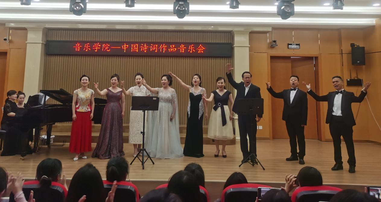 本场音乐会坚持以习近平文化思想为指导,充分发挥中华优秀传统文化的凝聚力、影响力和独特的育人优势,将高水平专业艺术实践与高质量思想政治教育有机融合,弘扬优秀传统文化,实现教学价值引领。结合学校“师范性、地方性、应用型”的办学定位和实践教学体系,声乐教研室团队将“理论+实践”有机融合,以培养知识性、技能型、实践性为一体的应用型音乐教育专业人才为目标,并结合中华优秀传统文化深化课程思政的教学理念、不断提升学生的艺术审美和人文素养为目的,筹备了本场音乐会。这场音乐会既是声乐教研室校级一流课程——《声乐》课程建设成果的展示,也是提升内涵建设,促进教师专业能力成长的平台,音乐会以其独特的韵律和意境,传承和弘扬了中华优秀传统文化和民族精神。中国诗词是中华优秀传统文化的瑰宝,诗词歌曲和诗以歌,唱诵经典,以音乐之美唤醒中华儿女血脉里的文化基因和温暖记忆。
