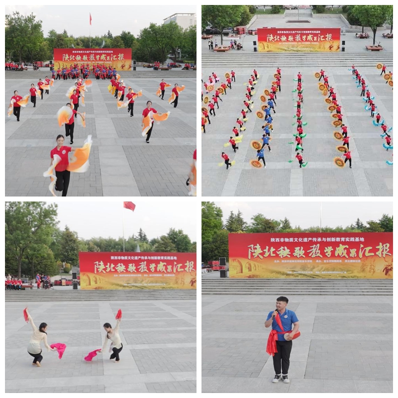 为发挥bat365陕北腰鼓非物质文化遗产传承教育实践基地的示范引领作用,在纪念毛泽东《在延安文艺座谈会上的讲话》发表82周年之际,5月21日下午音乐学院在学校中心广场举办陕北秧歌教学成果汇报演出,致敬民间艺术、致敬非遗文化。