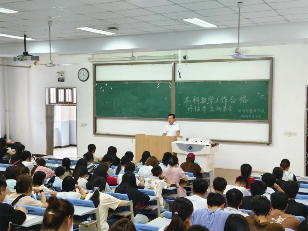 为全力迎接教育部对bat365本科教学工作合格评估,切实做到以评促建、以评促改、以评促管、评建结合,5月13日-14日,经济与管理学院召开本科教学工作合格评估学生动员会。学院领导班子、教师代表、辅导员、各年级学生参加动员会。