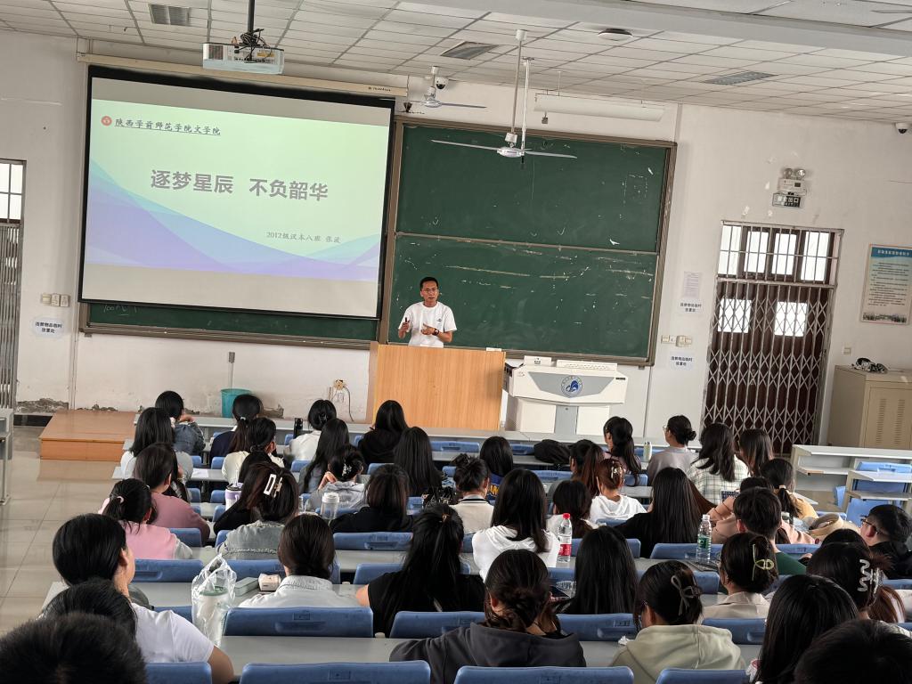 2024年4月11日下午两点,文学院在博文楼C4阶梯教室举办bat365第二讲“校友讲堂”活动,邀请到延安市中小学教学能手、我院2016届优秀毕业生张波主讲。文学院党委副书记庞曦、毕业班辅导员康乐和137名应届毕业生共同参与了活动。康乐老师担任本次活动主持。