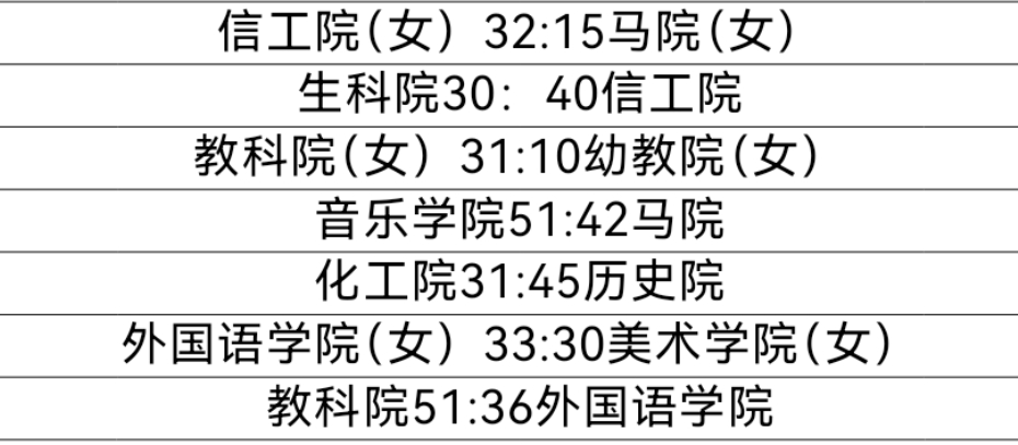 此次联赛旨在加强各个学院之间的交流,增进同学们之间的团结和友谊,同时也为丰富大学生课余生活,培养大家的集体荣誉感。为提高学生的全面素质,构建和谐、文明的校园文化氛围做出了努力。经过激烈角逐,第一天的比赛战况如下: