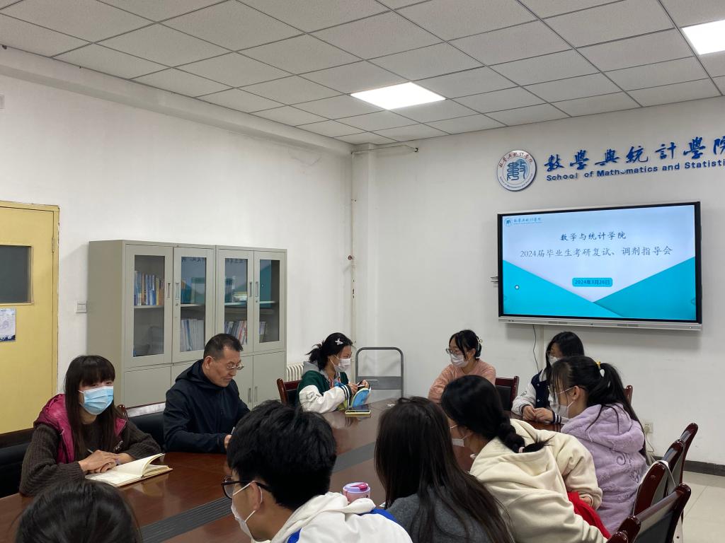 为助力2024届考研学子积极应对考研复试,进一步做好毕业生升学工作,加强精准指导,提升2024届毕业生考研成功率,3月26日,数学与统计学院在二教楼D319会议室召开2024届毕业生考研复试、调剂指导会,学院相关领导、毕业班辅导员及2024届考研上线学生参加会议。会议由学院党委副书记、毕业班辅导员张晔主持。