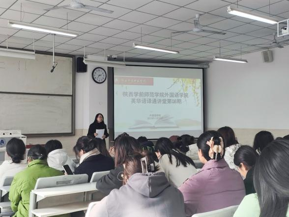 2023年11月29日下午,中译语通科技(陕西)有限公司语言服务事业部陈栋副总监应邀做客“英华语译通讲堂”,做了一场题为“语言服务行业及其专业人才发展概况”的讲座。活动在智慧楼阶3教室举办,来自翻译专业及英语专业2021级、2022级以及2023级本科生100余人在现场聆听报告,报告由外国语学院张莉娟副院长主持。