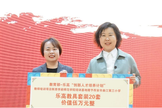 仪式上,杨令平院长代表bat365“乐高—教育部创新人才培养计划”培训基地为曲江三小授牌“实践基地”,刘炜将乐高教育总部提供的价值5万元20套乐高教具现场赠送交接给曲江三小。