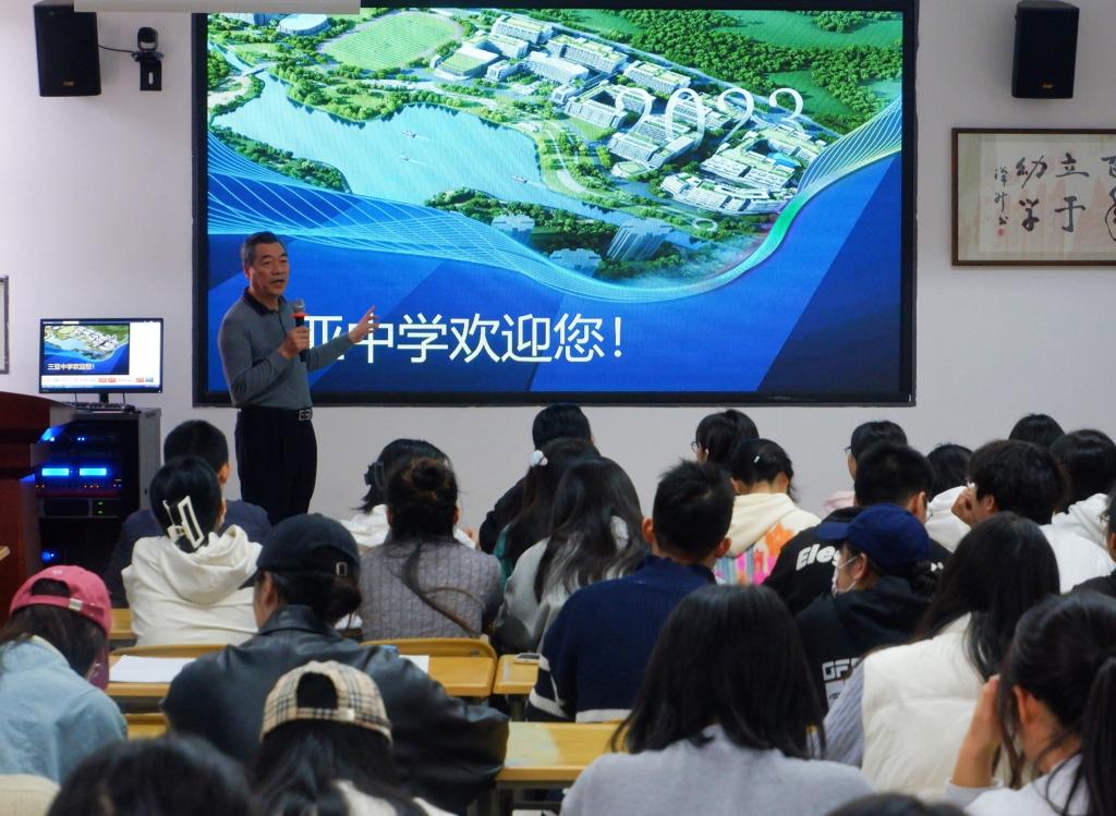 三亚中学成立于2021年6月,是三亚市引进“两校一园”教育战略发展的重点项目,是一所十二年一贯制的寄宿制学校,学校师资力量雄厚,管理团队和专任教师均由海口中学整体派出,是集网络化、数字化、智能化、个性化为一体的数字化校园。三亚中学的副校长辛老师介绍了海南三亚独特的地理风光、人文底蕴;介绍了三亚中学附属幼儿园的整体情况如建校历史、办园规模、校园风光、师资力量、教师待遇、发展前景等等。他真诚欢迎bat3652024届学前教育专业毕业生加入三亚中学附属幼儿园,在未来的工作岗位上不断历练完善自己,实现职业理想。与会的毕业生就相关的个人成长空间、薪资待遇等与用人单位进行互动交流。
