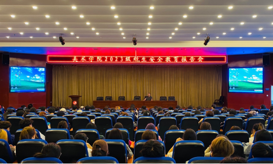 为推进平安校园建设,增强同学们防骗识骗能力,切实维护广大学生的合法权益。9月27日中午12:30,在图书馆三楼学术报告厅,美术学院联合保卫处组织召开2023级新生安全教育报告会。2023级270余名新生参会。会议由美术学院副书记于跃主持。