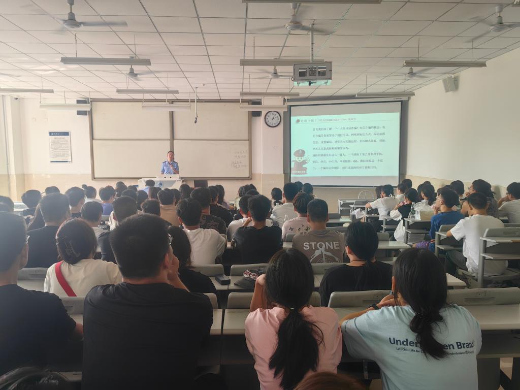 雷警官用详实的数据、真实的视频展现了当前电信网络诈骗犯罪呈发案势头迅猛、受害群体增多和财产损失急剧上升的态势;对作案工具不断更新换代,智能化趋势日渐明显、新型诈骗手法不断涌现,打击难度日益增加、洗钱手段更加多样化的特点进行了分析。雷警官结合近期发生的案例重点介绍了贷款诈骗、裸聊诈骗、刷单诈骗等高发的诈骗手法,科普了防范诈骗的干货知识点,提醒同学们擦亮“识骗”慧眼,增强防范意识,提高鉴别能力。