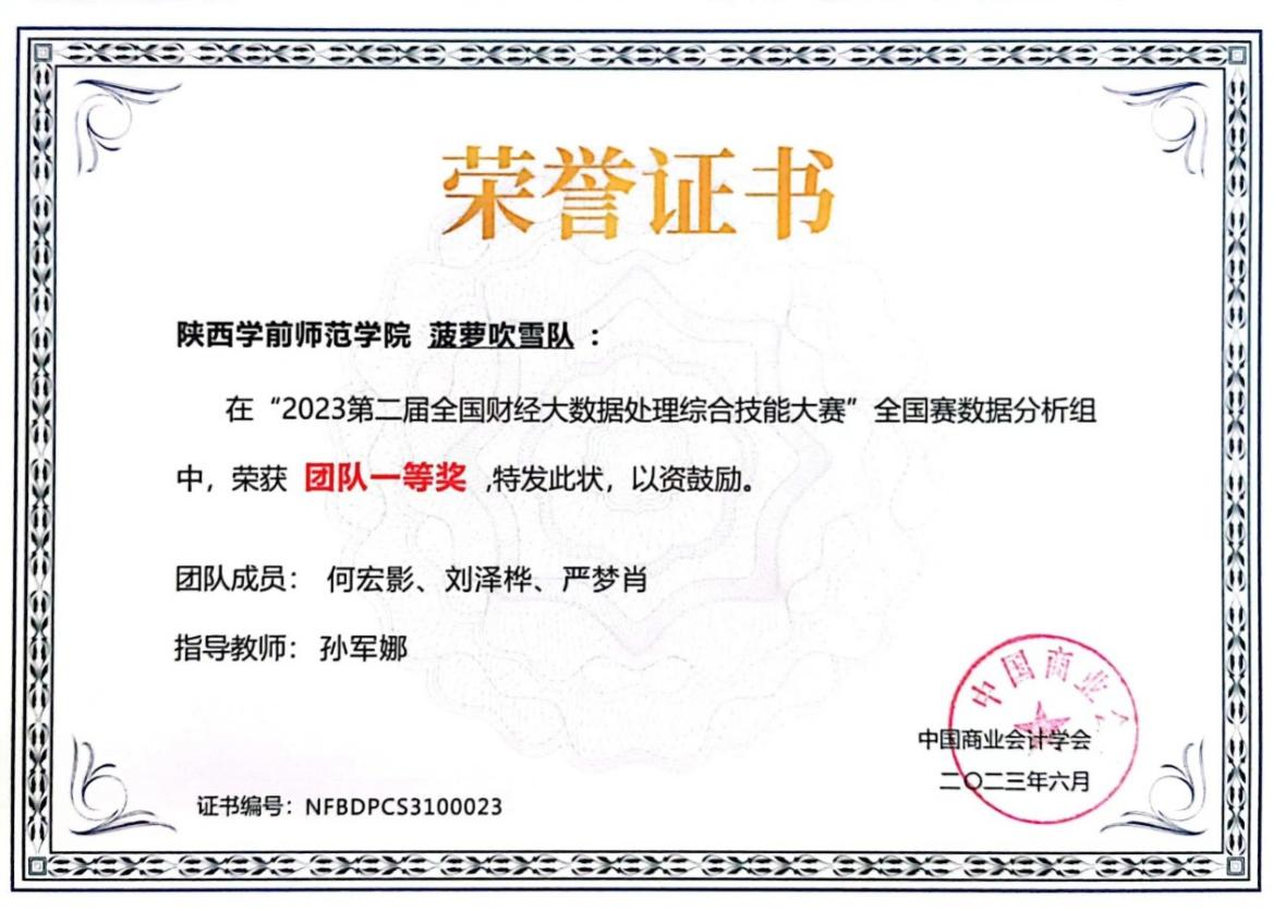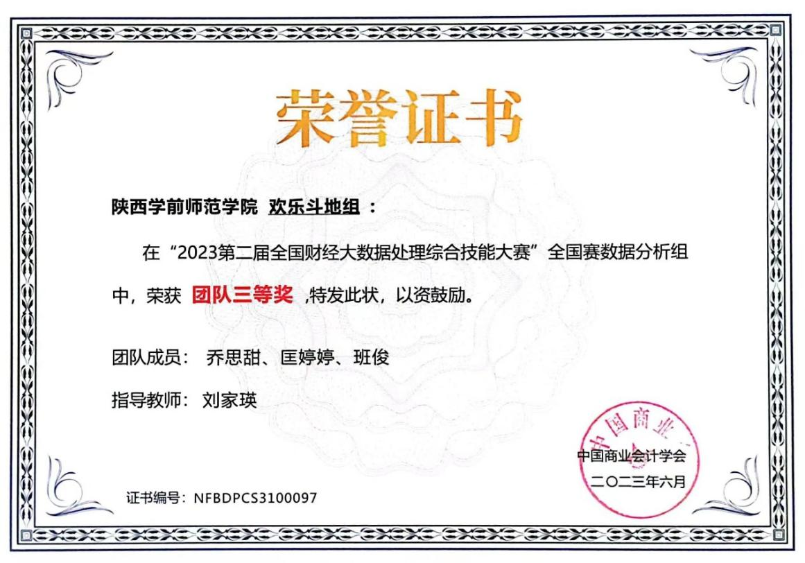 由中国商业会计学会主办,深圳希施玛数据科技有限公司承办的第二届全国财经大数据处理综合技能竞赛全国赛(数据分析组)于近日圆满落幕。本届大赛有来自全国26个省、市、自治区的279家本科院校、4469名学生参加。竞赛内容融入大数据、人工智能等现代信息技术到财务数据分析中,经济与管理学院特邀信息工程学院的老师和学生参与,共同组队,强强联合,优势互补。经过激烈角逐,bat365参加国赛的6支队伍全部获奖,其中,一等奖一项,二等奖三项,三等奖二项,成绩在参赛院校中名列前茅。
