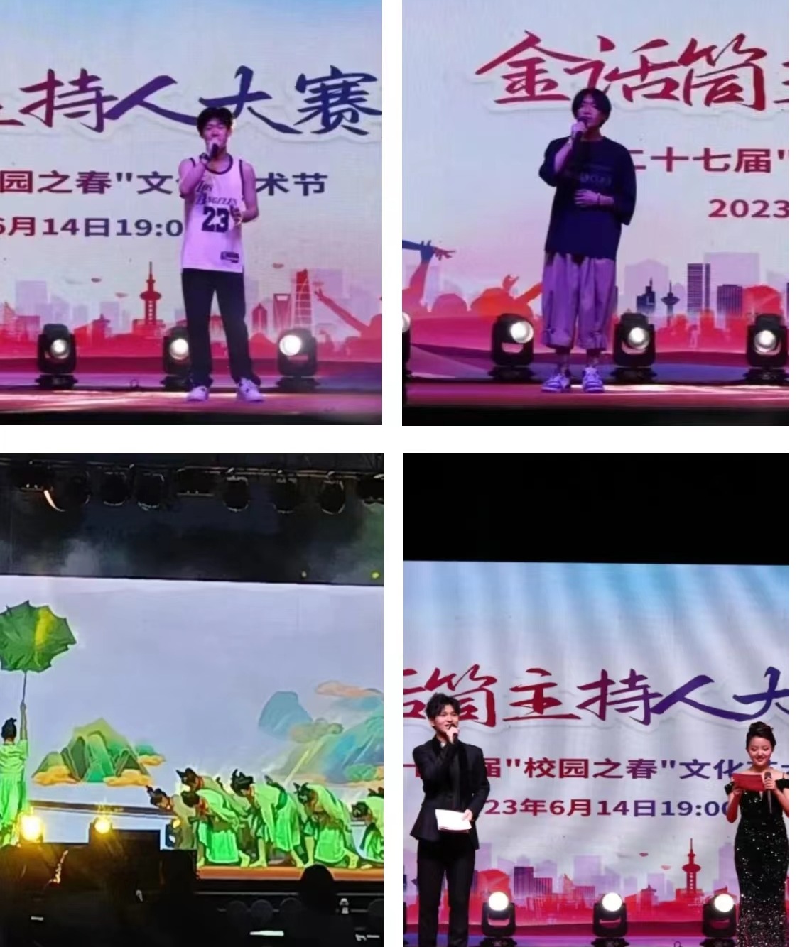为丰富bat365学子的校园文化生活,为热爱主持的同学提供一个展示自我的舞台,传递出当代青年大学生朝气蓬勃的精神面貌和青春正能量,营造良好的校园文化氛围。2023年6月14日晚19:00,由党委宣传部、校团委主办,信息工程学院团总支、学生会,师院之声广播站承办的第二十七届“校园之春”文化艺术节之第十届“金话筒”主持人大赛在中心广场成功举办。