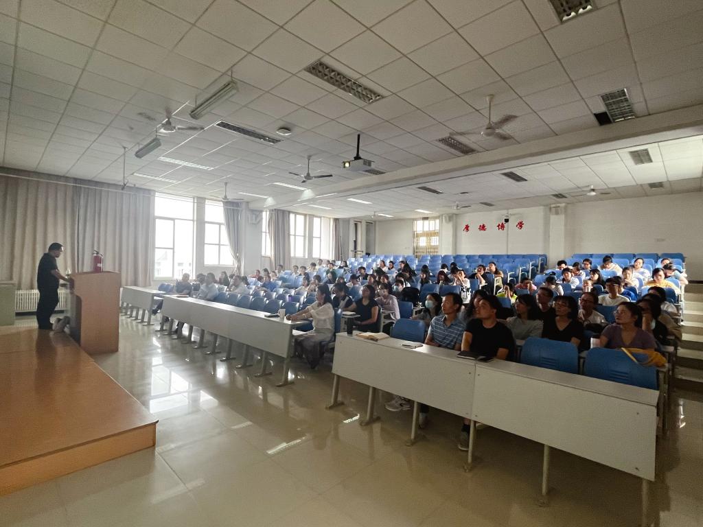 为进一步强化师生安全意识,提高防范自救能力,2023年5月18日下午14:00,生命科学与食品工程学院师生在积学楼C4阶梯教室参加了了“人人讲安全,个个会应急”消防安全培训。