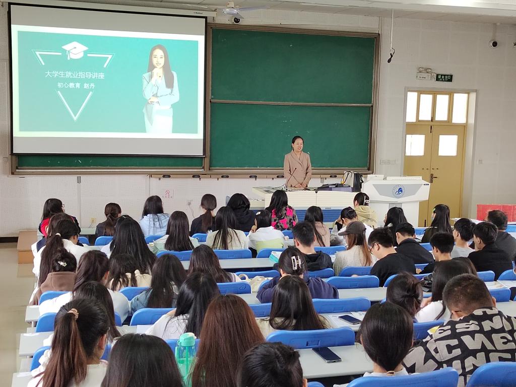为进一步推进毕业生就业工作,拓宽毕业生就业渠道,大力构建毕业生与用人单位的交流平台,促进2023届毕业生高质量就业。4月26日下午数学与统计学院特邀陕西初心教育科技有限公司在2号教学楼A3教室为我院毕业生召开专场招聘宣讲会。初心教育教研部主任赵丹,市场部经理胡腾飞,网络部王洁,数统院毕业班辅导员赵耀彤及我院未就业毕业生参加了宣讲会,初心教育研究部主任赵丹主讲。