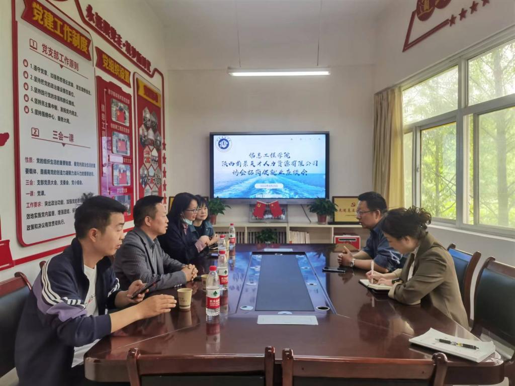 座谈会上,陕西前景英才人力资源有限公司田璐经理、樊乐经理就企业的发展历程、企业文化及公司运营情况及企业用人需求进行了详细介绍;也提出愿意配合学院就业育人目标,积极开拓就业岗位,扩大人才输送范围。信息工程学院院长向公司详细介绍了学院育人理念、人才培养方案、学生专业及结构等。最后,双方围绕校企合作、发展路径和合作意向等方面进行了深入探讨,共同做好就业指导服务,加强就业政策宣讲,拓宽合作领域,为更好的推动我院学生就业做好准备。