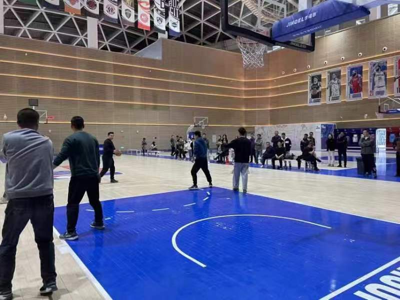 省体育馆内,陕西省体育馆、陕西体育博物馆副馆长贾亚娟为学员们介绍了省体育馆建设、十四运会办赛、后全运时代场馆运营和全民健身活动开展情况。在训练馆的NBA篮球公园里,部分学员与健身群众进行友谊赛,体验了一流、高品质的健身设施。