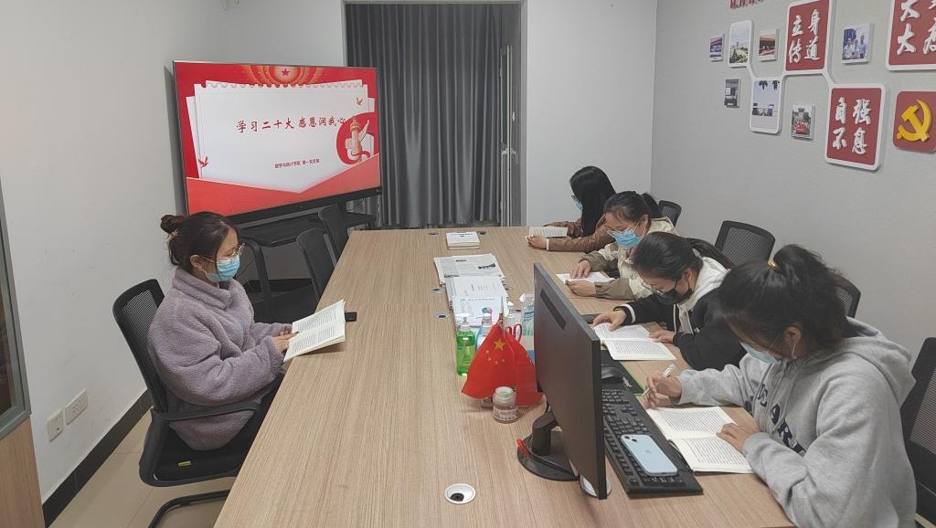 学生第一党支部在数统院党员工作站进行“学习二十大,感恩润我心”主题学习,会议由党员工作站站长高显明同志主持。会上全体学生党员集中学习了二十大报告和其它重要会议精神,支部成员结合自身实际情况分享了自己学习的心得体会,大家纷纷表示作为学生党员,只有不断学习提升,不断用党的思想理论武装大脑,才能更加坚定理想信念,在实践中不断提升自己的能力,学以致用。