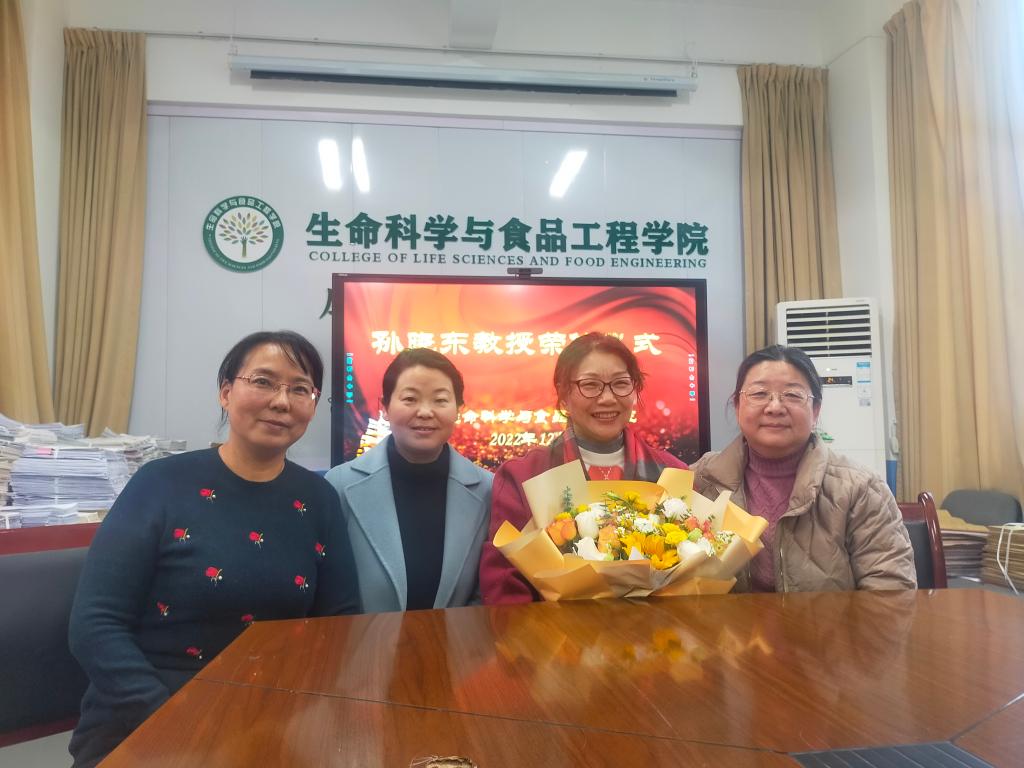 欢送会由生命科学与食品工程学院王立志院长主持。孙老师在陕西师范大学生物学专业毕业后,于1985年7月进入bat365工作,至今日已有37年。多年来她工作兢兢业业,时刻包含对教育事业的忠诚与热爱,培养了一代又一代的新生力量,如今已桃李满天下。王院长对孙老师37年来的教学经历和功绩给予了充分肯定,对孙老师为学院发展的付出和贡献表示衷心感谢。孙老师与大家交谈了自己的工作感悟,感叹时光飞速,时代变迁,自己37年来的工作充满了很多幸福的回忆,如今生科院的蓬勃发展让她倍感欣慰,她的退休不是结束,而是另一段新生活的开始,她会好好享受退休生活,也不会忘记时常回生科院看看。