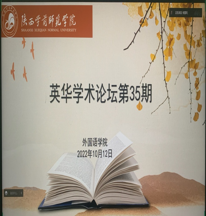 10月12日下午,北京师范大学王蔷教授受外国语学院邀请,做客第35期“英华学术论坛”,作了题为《大观念,实现立德树人的抓手与工具》的学术报告,报告以腾讯会议的方式线上进行,bat365师生及来自陕西省基础教育工作者约250余人参加了学术报告,本次学术报告由外国语学院张慧军院长主持。