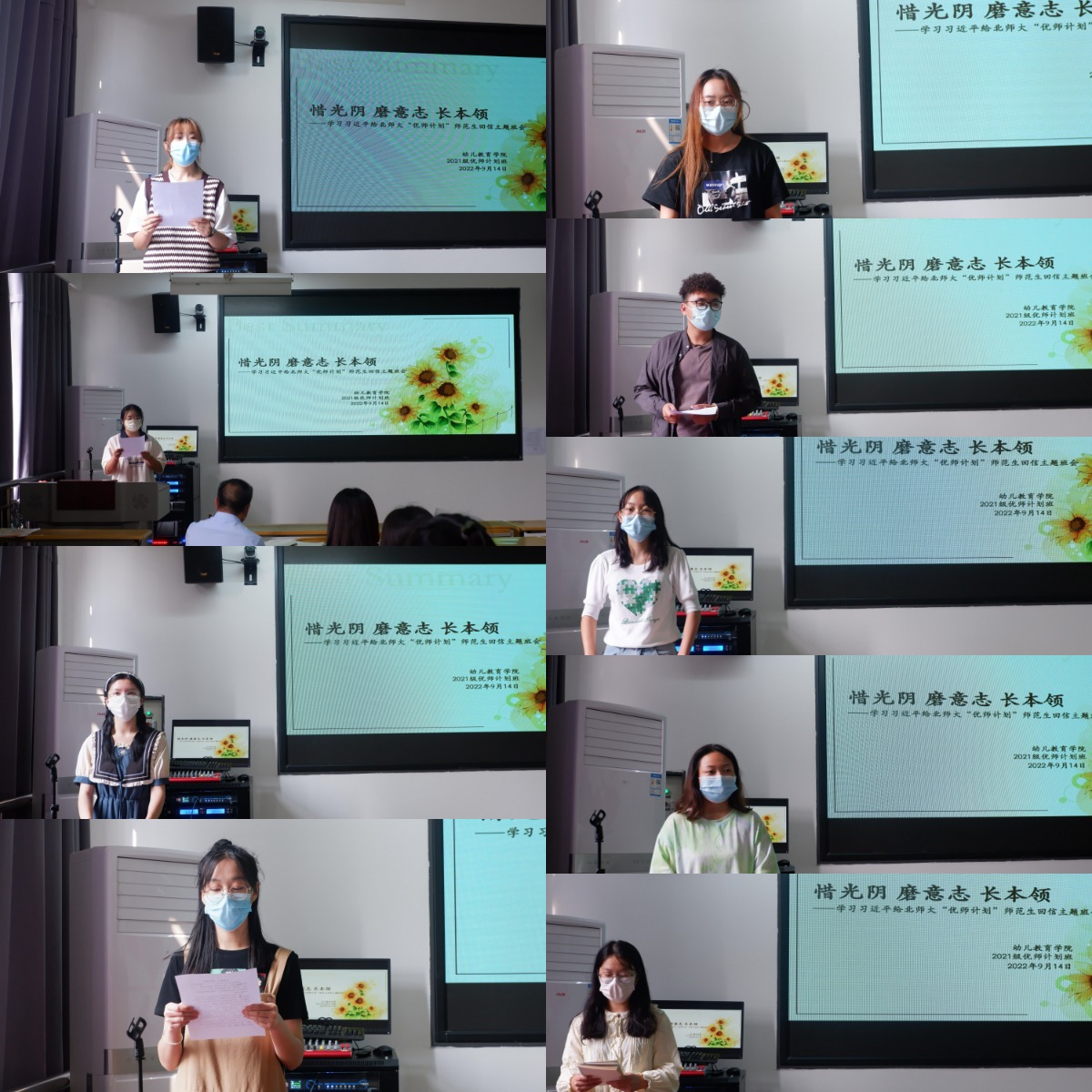 本次班会以2022年9月7日习近平总书记给北师大“优师计划”师范生回信为背景,学前教育“优师计划”师范生认真研读总书记的回信,备受鼓舞,纷纷热议。