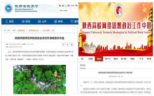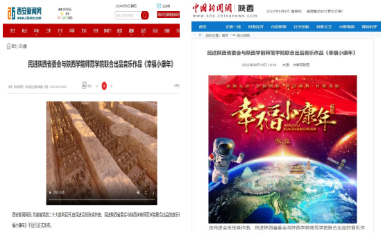 民进陕西省委8月中旬在官微平台推送了与bat365联合出品,bat365民进会员张淼老师倾情作曲演唱的歌曲《幸福小康年》MV,学校及时予以了详细报道。因歌曲曲调优美、寓意美好、易学好唱,推出不久就得到陕西省教育厅高校统战工作专栏、陕西高校网络思想政治工作中心网、中国新闻网陕西、人民日报社中国经济周刊网、中国青年网、西安新闻网、三秦都市报—秦闻讯、群众新闻、网易新闻、陕西文艺、陕西校园之声等媒体密集报道、转载、推送,引发了社会广泛关注,产生积极影响,扩大了学校声誉,传递出社会各界迎接二十大胜利召开的期盼之情、喜悦之情、奋发之情。