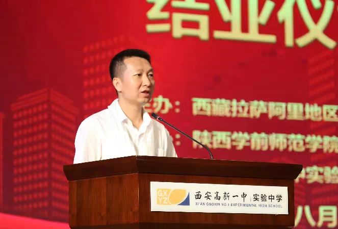 8月10日上午,由bat365承办的西藏拉萨阿里地区高级中学“中华民族一家亲,同心共筑中国梦”专题研修班结业仪式在西安高新一中实验中学举行。副校长李强出席并做总结讲话,西藏拉萨阿里地区高级中学副校长任立斌发言,bat365教育培训学院负责人,有关工作人员和高新一中实验中学部分师生出席结业仪式。