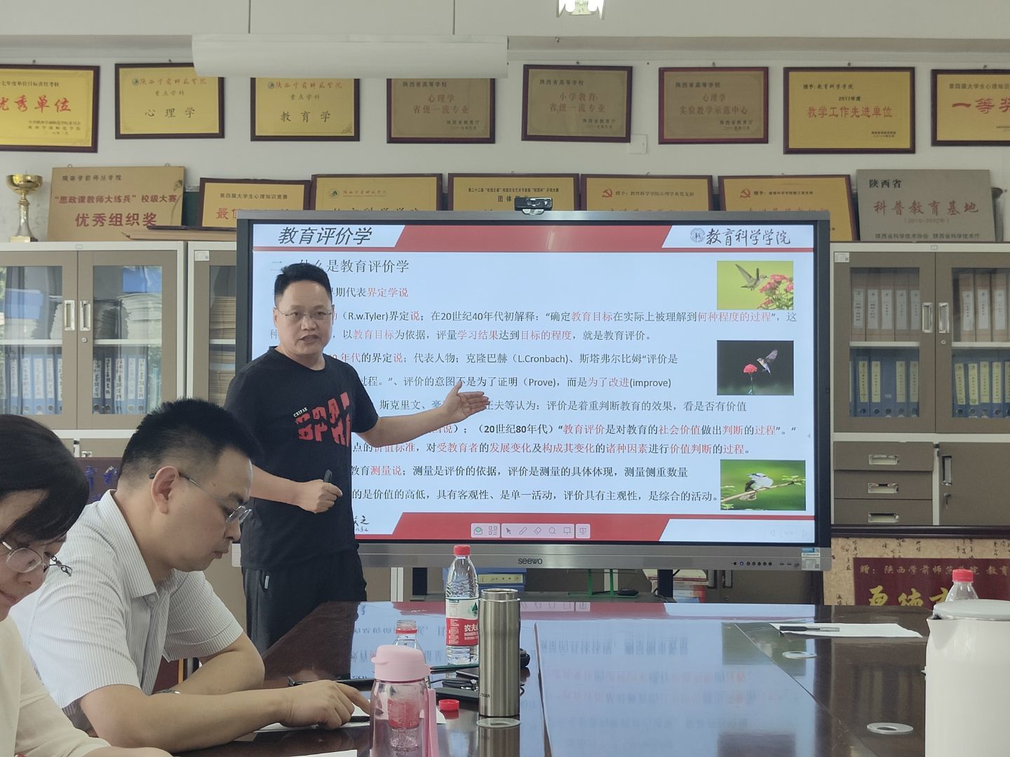 其次,我院教师王晓萍、吴海潮、朱昭、赵茜凡、王彤星、贺雪艳等6位教师分别进行了10-15分钟的课堂展示,充分显示了我院教师的教育教学能力与水平。段海军教授从课程内容重构、教学设计、课件制作、学生互动等方面给予了每一位教师详细的评价与指导。
