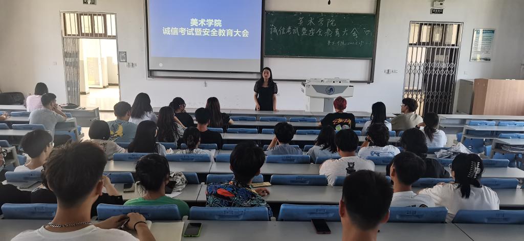 为了严肃考风考纪,加强学风建设,培养学生养成良好的安全意识。6月29日上午9点,美术学院于博文楼B3阶梯教室召开诚信考试暨安全教育大会,美术学院党委副书记(主持工作)文竹、美术学院党委副书记于跃、辅导员、学生干部代表参加了此次会议。