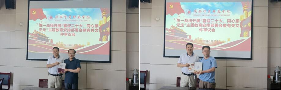会上组织学习了《中国共产党政治协商工作条例》《陕西省无党派人士、党外知识分子“喜迎二十大、同心跟党走”主题教育实施方案》《“同心同向共奋斗 再接再厉著华章”主题实践活动方案》及《关于在bat365统一战线开展“喜迎二十大、同心跟党走”主题教育实施方案》等,统一了思想认识,明确了工作重点,并对推动主题教育、主题实践活动作了具体动员部署。