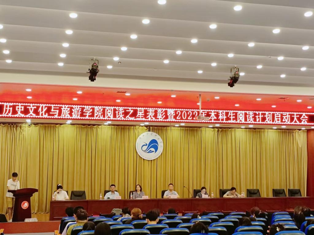 为进一步推进我院本科生阅读计划,形成“爱读书、勤读书、善读书”的良好风尚、营造书香氛围,2022年6月20号下午两点。历史文化与旅游学院阅读之星表彰大会暨2022年本科阅读计划启动仪式在图书馆报告厅举行。参加表彰大会的有图书馆馆长王俊玉老师、历史文化与旅游学院院长杜红艳老师,副院长苏琨老师、副院长黄彦震老师、党委副书记景艳老师以及全体辅导员和学生代表,大会由吉辉老师主持。