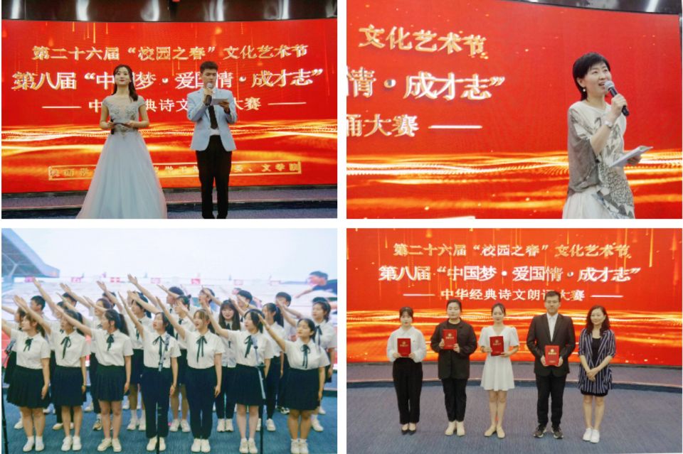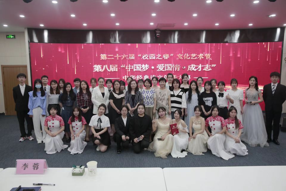 胸藏文墨怀若谷,腹有诗书气自华,雅言传承文明,经典浸润人生。为实现中华民族伟大复兴凝聚磅礴力量,从中华经典中汲取智慧力量、坚定理想信念、彰显时代精神,以昂扬姿态迎接党的二十大。5月25日下午,由党委学工部、校团委及文学院主办的第二十六届“校园之春”文化艺术节之第八届“中国梦·爱国情·成才志”中华经典诗文朗诵大赛决赛在二教A1顺利举行。大赛邀请校团委书记李蓉、文学院教授韩承红、文学院副教授吕炜、音乐学院教师冯佳妮、文学院教师张文丽担任评委。全校各学院共九十余名学生参与线下活动,三百余人通过线上直播共同观看了本场比赛。
