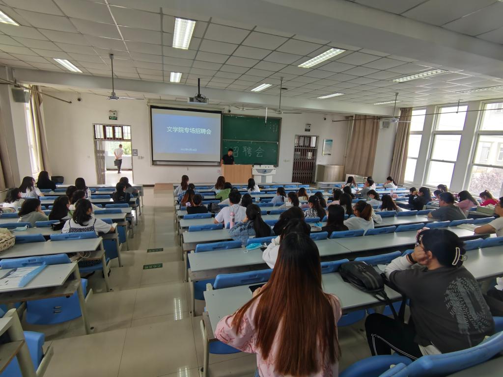 座谈会后,文学院在博文楼c4阶梯教室召开专场招聘会。西安立讯科技技师学院和西安艺博恒天教育科技有限公司负责人分别向学院近100名2022届未就业毕业生进行了企业招聘宣讲,并就毕业生们关心的招聘岗位、福利待遇和招聘流程等问题进行了详细说明。与会毕业生踊跃报名、积极应聘,最终有14名学生与用人单位达成了初步就业意向。