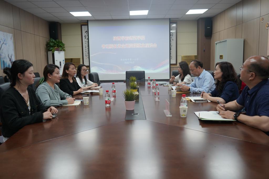 在西安经开第一小学,王凯书记一行在常务副校长李义华、教导主任崔玥的陪同下,实地参观了该校的办学特色展示,随后与经开一小的领导、学校校友进行了座谈。座谈会上,李校长详细介绍了该校的办学理念、教师队伍状况、教学工作特色亮点以及近年来取得的成绩,并对学校输送的毕业生给予充分肯定和高度赞扬。牛文明院长介绍了文学院的历史沿革、人才培养基本情况和本届毕业生就业现状,希望双方能够加强合作的深度与广度,促进毕业生高质量就业的同时,更好地服务社会。在经开一小工作和学习的毕业生周舒飞、白雪纯分别发言,交流了自己在经开一小工作和学习的感悟,并对母校的悉心教导和老师们的细心栽培表示感谢。王凯书记代表学校对经开一小对bat365就业和实习工作的大力支持表示感谢,他围绕本次访企拓岗专项行动,分析了今年就业工作的严峻形势和学校目前就业工作中的难点与不足,希望供需双方充分发挥好资源优势,进一步加深融合互助,拓宽合作领域,创新合作模式,携手推进人才培养,努力形成促进毕业生就业、助力用人单位选才的双赢局面。