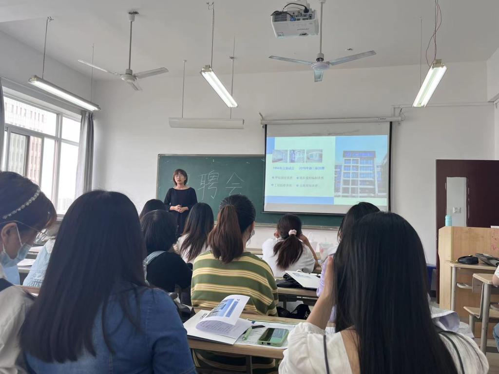 会上,西安大地测绘股份有限公司人事主管张迪向毕业生们详细介绍了企业发展概况、企业资质、企业文化、岗位招聘信息、员工晋升体系及公司各项福利待遇等,并就毕业生提出的关于入职情况、面试流程等问题一一解答。