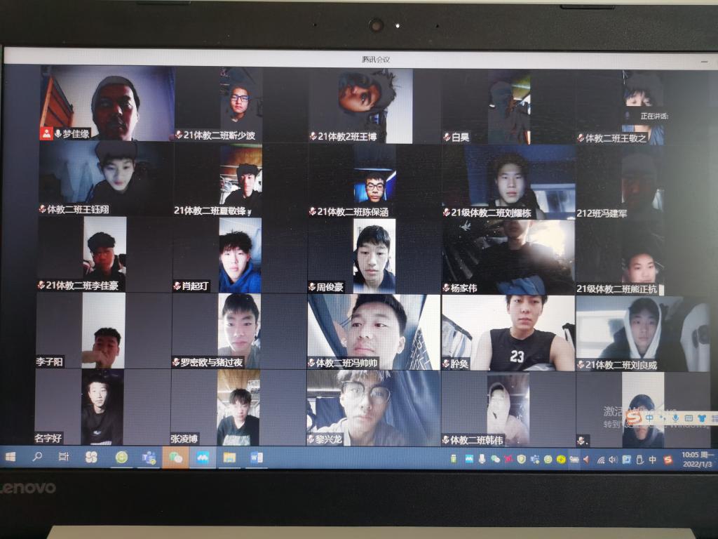 根据疫情防控的工作调整,结合科研处和教务处的安排,我院开展线上学术讲座和线上教学。为保障线上教学的顺畅进行,我院成立了线上教学督导组,通过前期线上教学工作的传达与动员、线上教学课表编排、线上课程教学研讨、线上课程教学计划制定、线上教学课程资源整合、线上课程+班级微信群建立、线上教学平台及设备联调等准备工作的有效完成,体育学院2021-2022学年第二学期线上教学工作于2020年1月3日顺利启动。我院体育教育、运动康复两个专业10个班级,共计开出专业课程27门,线上教学任务分别由22位教师承担。,体育学院党政班子深入学生宿舍对照课表依次对第一天线上教学开展情况进行了全面检查,教师填报教学日志和教学反馈,我院线上教学运行正常、情况良好。