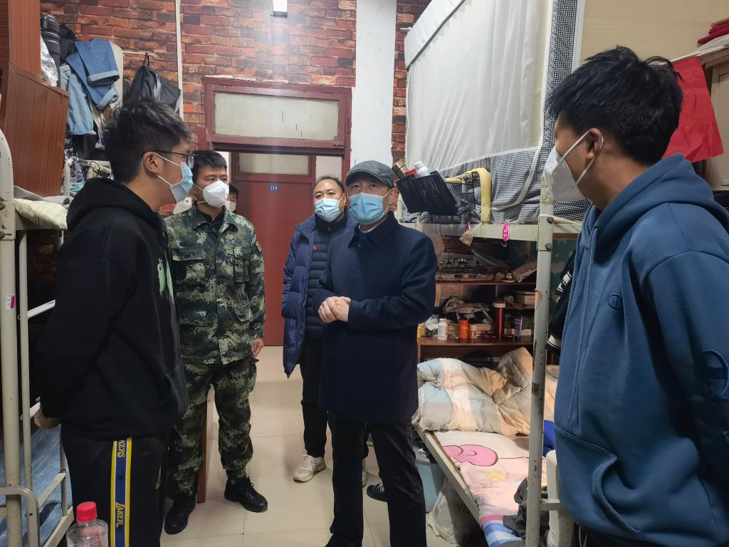 根据学校工作部署,2022年1月2日我院党政班子成员全部返岗长安校区,分别对线上教学、学生的线下学习生活、核酸检测组织、安全防护要求迅速展开工作。校党委副书记、纪委书记、省监委驻校监察专员王凯在我院班子成员的陪同下,深入体育学院学生公寓、临时党支部进行调研慰问,要求加强对进行学生心理疏导、对生活困难学生进行帮助。