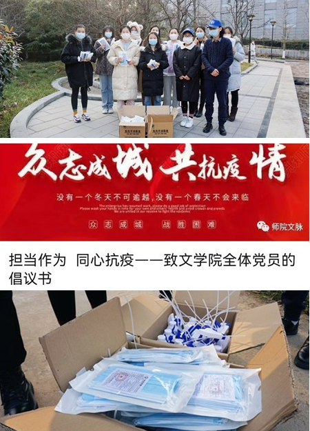 面对疫情防控严峻复杂的形势,文学院党委根据学校疫情防控工作领导小组工作部署,迅速启动疫情防控相关预案,加强对师生的宣传教育与防控管理,坚决筑牢校园健康安全防线。12月16日,针对因市区疫情管控政策要求造成部分领导干部、教职员工封闭管理的情况,学院党政召开疫情防控专题会议,研究制定《文学院疫情防控期间学生管理现场工作方案》,确定校区临时负责人并组建工作小组,着手落实线上教学和学生“云”管理模式。12月22日,文学院党委成立党员先锋队并向全院师生党员发布《倡议书》,要求全体师生党员增强做好疫情防控工作的使命感责任感,带头遵守并落实疫情防控各项要求,坚持在疫情防控中积极发挥先锋表率作用,勇于担当、冲锋在前。12月23日,学院党委购置了口罩、消毒喷雾等防疫物资逐一发放到学生手中,要求大家务必做好个人防疫,使同学们深深感受到来自学院的温暖,也更加坚定共克时艰、战胜疫情的决心和信心。12月29日,在疫情管控升级的形势下,经学校多方协调,学院班子主要负责人克服困难返校返岗现场指挥,成立文学院疫情防控工作专班,明确工作任务,夯实工作责任,确保线上教学正常开展和在校学生的安全稳定。