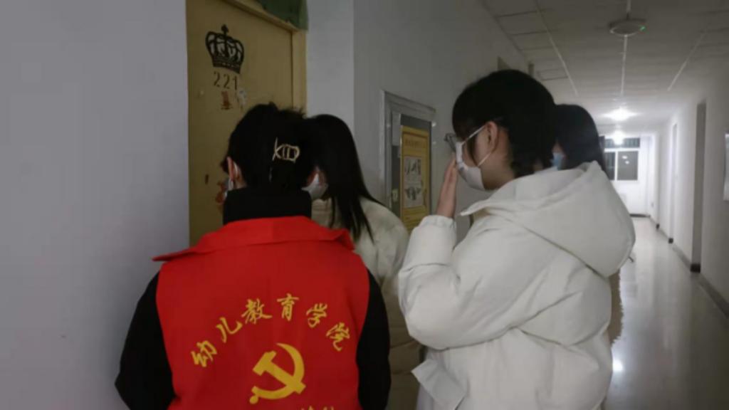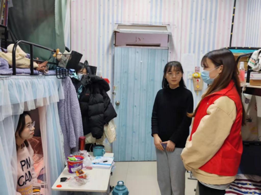 志愿者们利用晚上时间,走访学生宿舍,宣传学校防疫政策,解答同学们相关疑问,及时了解并向学院反馈同学们的诉求,也希望同学们在特殊时期更注重防护,勤洗手、多通风,不信谣、不传谣。
