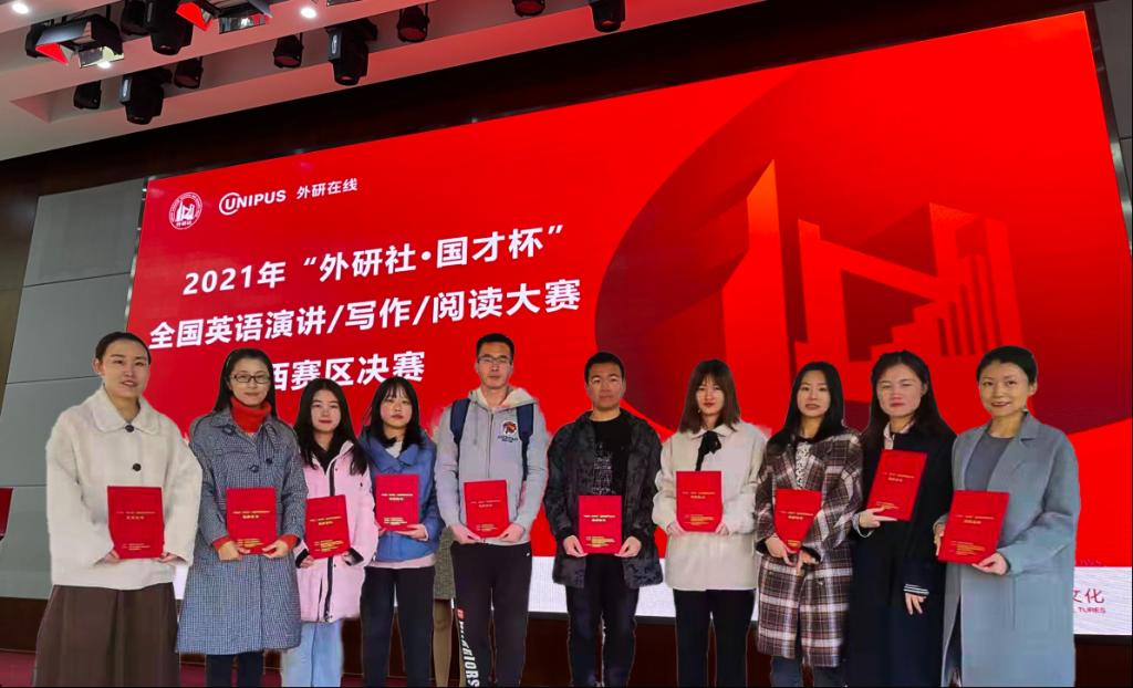 11月6日,2021年“外研社·国才杯”全国英语演讲、写作、阅读大赛陕西赛区决赛在西安工业大学落下帷幕。因新冠疫情防控需要,本次大赛以线上、线下相结合的方式进行,来自全省52所高校的三百多名选手进行了激烈的角逐,bat365共选派了七名选手参加了比赛,取得了令人瞩目的成绩,共斩获一等奖一名、二等奖一名、三等奖五名,其中,外国语学院杨涛同学获得了阅读大赛一等奖,施瑾怡、刘佳获得写阅读大赛三等奖;徐玮同学获得写作大赛二等奖,穆佳林、韩婧获得写作大赛三等奖;郭凡获得演讲大赛三等奖。外国语学院牛蕊、李娟、王蓉老师分获指导教师一、二、三等奖。