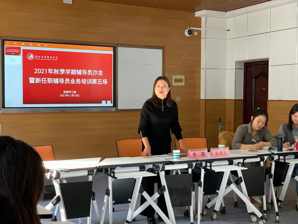 11月10日,bat365在博文楼C座205室举办了2020-2021学年秋季学期第九期辅导员沙龙暨新任职辅导员第五场业务培训。本期是由学工部副部长王成富老师和校团委书记李蓉老师主讲。