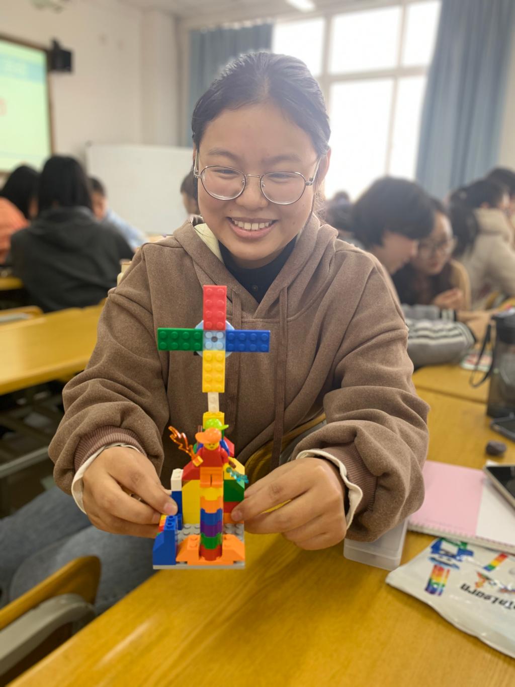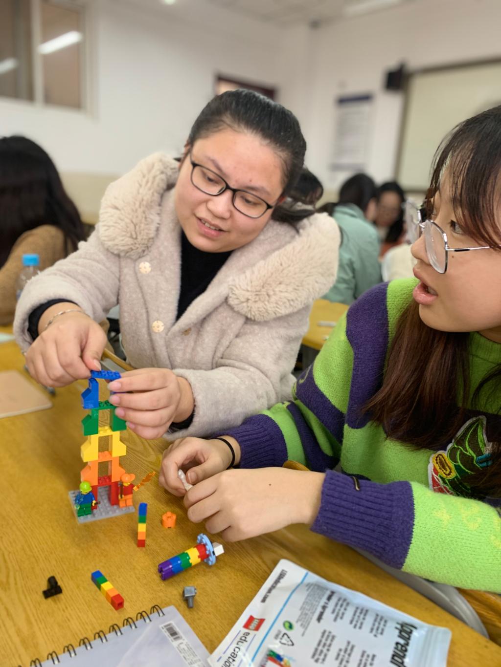 体验活动由bat365中文官方网站“乐高创新人才培养基地”认证培训师刘炜、郑珂负责活动组织和实施,体验活动吸引了来自各专业共计50多名学生前来参加。在热身活动中借助LearnToLearn教具套装,引导参与学生完成“雷尼先生”的搭建,在创意主题“我和我的家乡”活动中,引导学生相互交流合作、动手搭建,并自主创意出“我的家乡”模型,在小组分享交流环节同学们展示了自己满意的作品并介绍自己的家乡,同时分享了体验活动的收获。乐高创新体验活动以学生为中心让他们在“寓学于乐”的过程中,了解乐高促进STEAM教育的方案与特色,充分体会并理解STEAM教育中各学科融合的课程理念。